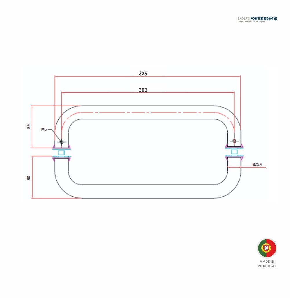 Este puxador duplo em aço inox é a escolha perfeita para quem procura funcionalidade e design moderno num só produto. Fabricado em tubo de 25 mm de diâmetro e com 300mm de comprimento entre furos, oferece uma pega confortável e segura, ideal para portas de uso intenso sobretudo em ambientes profissionais.