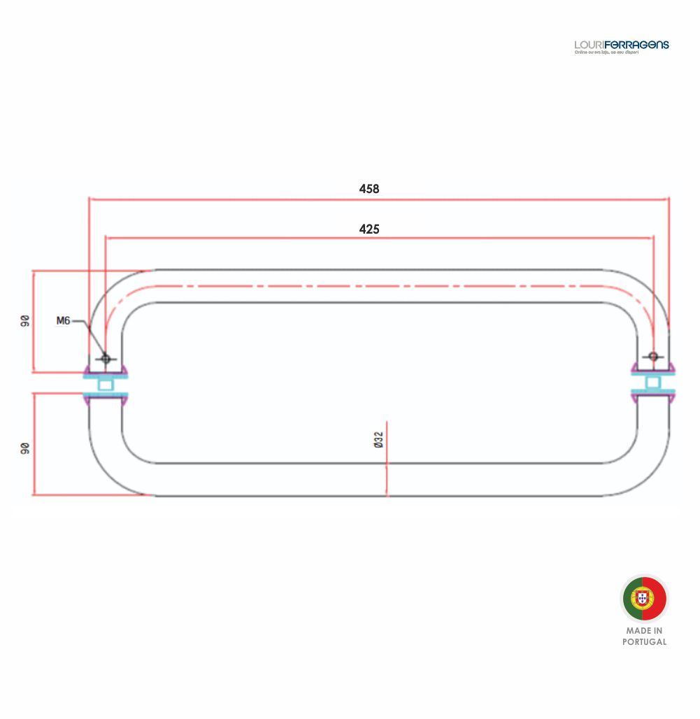 Este puxador duplo em aço inox é a escolha perfeita para quem procura funcionalidade e design moderno num só produto. Fabricado em tubo de 32 mm de diâmetro e com 425mm de comprimento entre furos, oferece uma pega confortável e segura, ideal para portas de uso intenso sobretudo em ambientes profissionais.