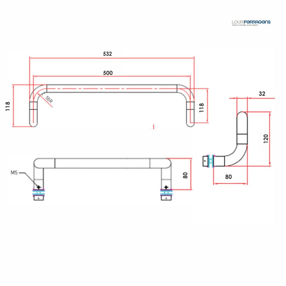 Com um design desviado (sutado), este puxador de 500mm em aço inox proporciona maior ergonomia sendo aplicado especialmente em portas de vidro e portas de alumínio. A sua construção em tubo de Ø32mm assegura uma utilização confortável e segura no dia a dia.